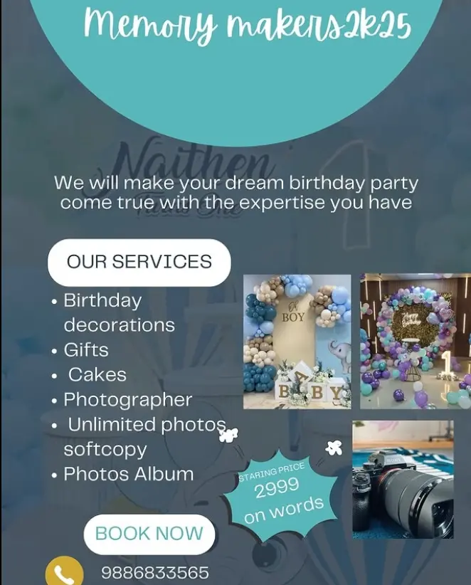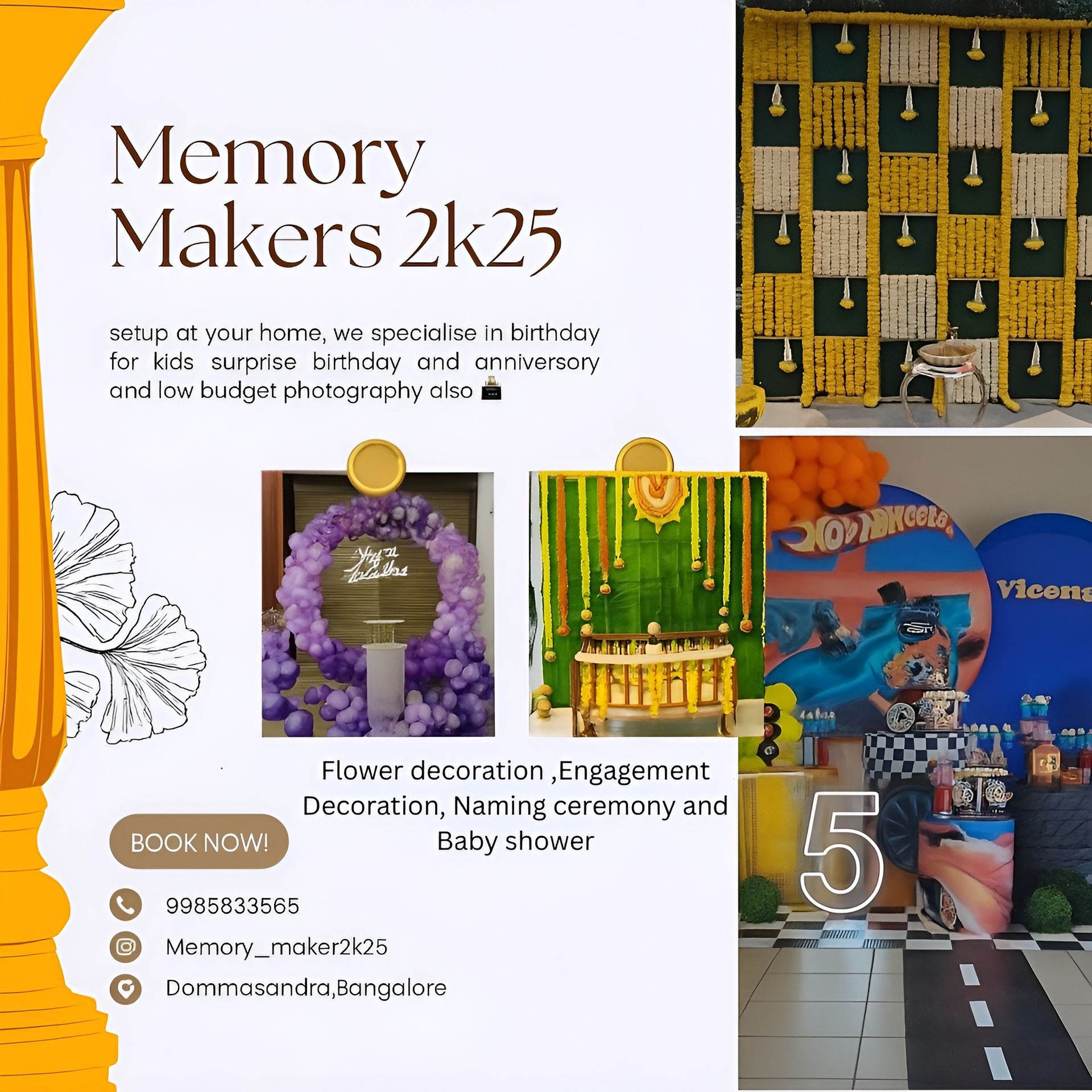 “Big smiles, bigger celebrations! at Memory Makers 2k25, we believe in creating magical atmospheres that stay in hearts forever. — from the very first balloon to the final sparkle, every detail is designed to make your event unforgettable.”