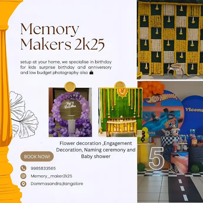 At Memory Makers 2k25, from birthday decorations to baby showers, and every little milestone in between – we turn your celebrations into unforgettable memories with creative balloon decoration for birthday and stunning photography.